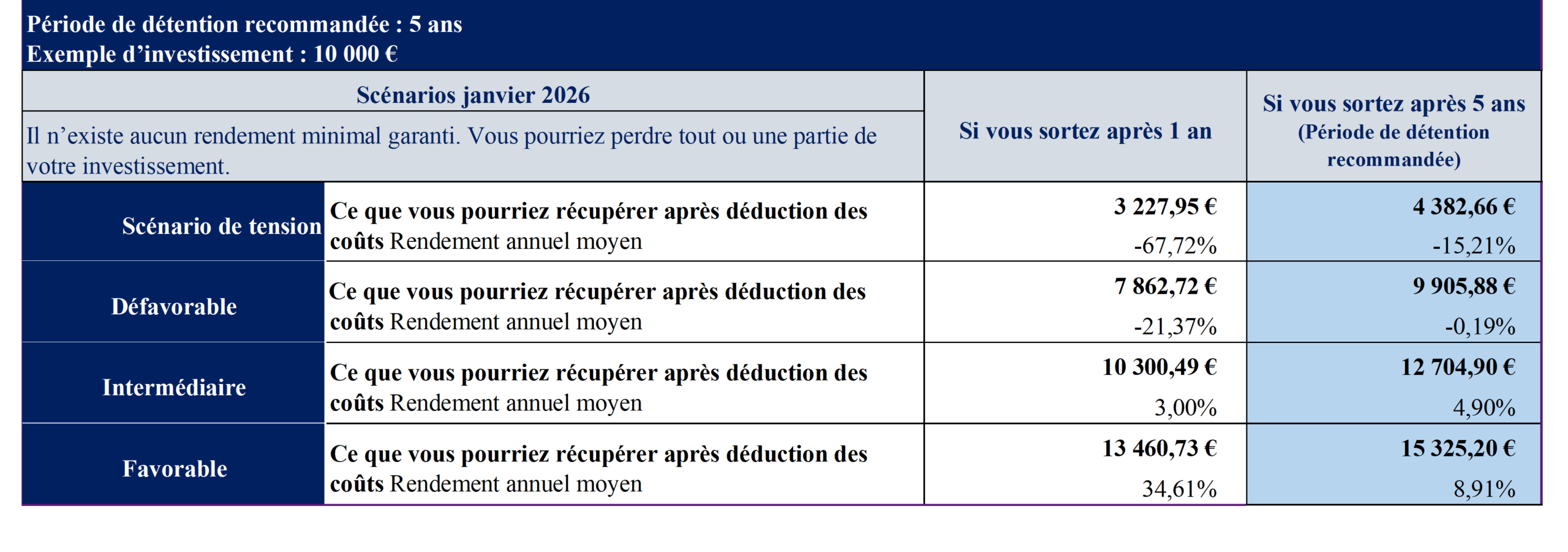 - Risque action : les marchés actions peuvent connaître de fortes variations.