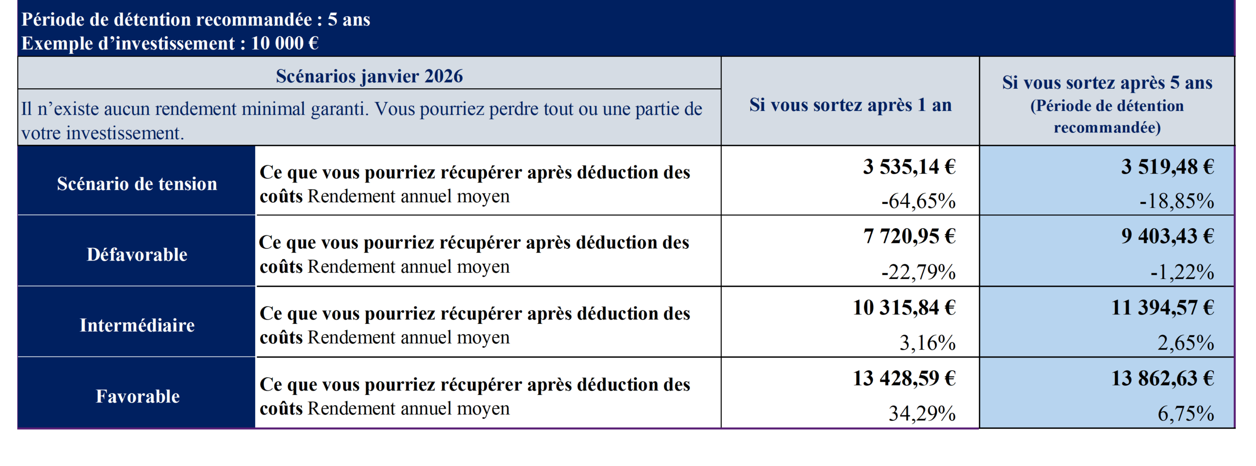 La performance sera calculée coupons et dividendes réinvestis, nette de frais de gestion directs et indirects et hors frais d’entrée et de sortie.