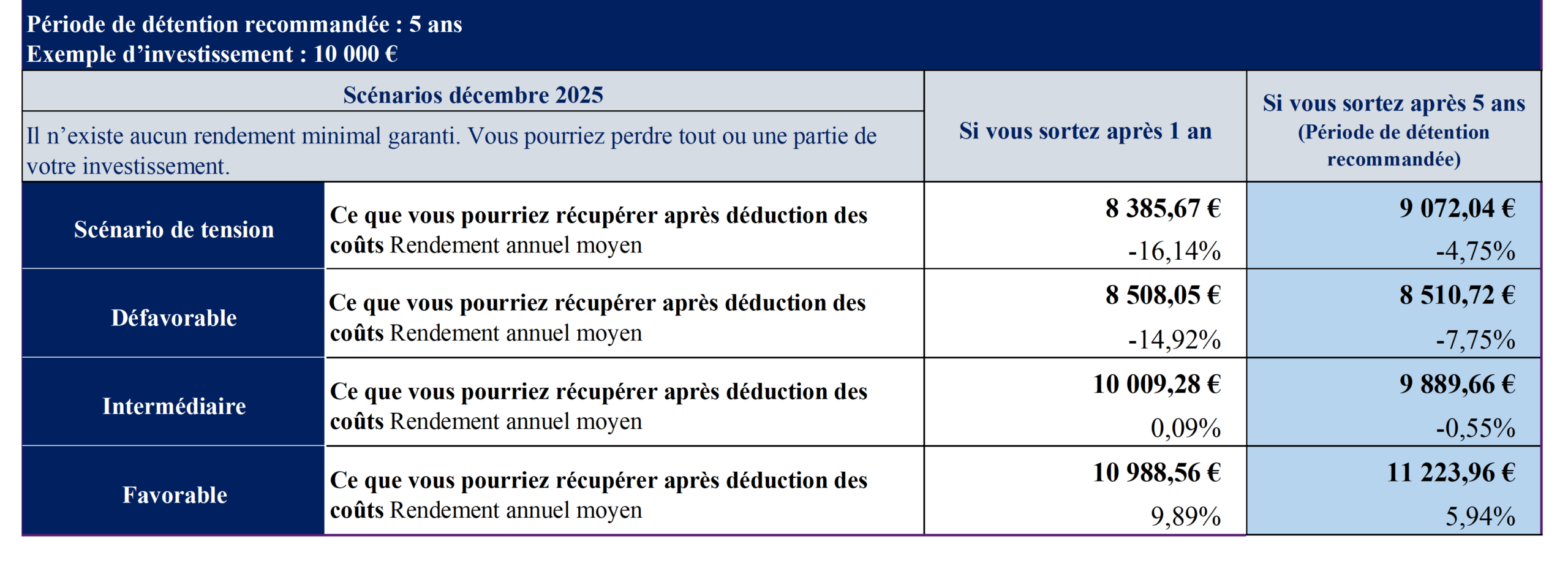 La durée d’investissement recommandée est de deux ans minimum.