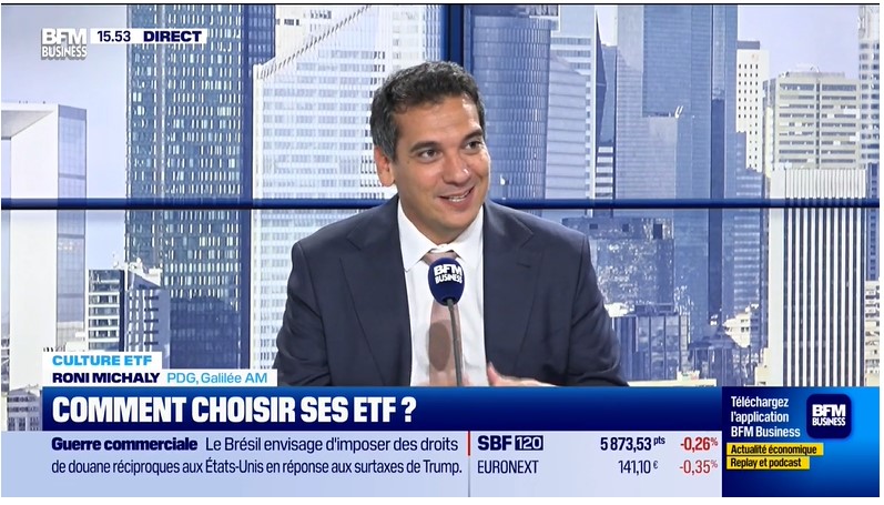 Au micro de Guillaume SOMMERER et Julie Cohen-Heurton sur BFM Business, Roni MICHALY, PDG de Galilee AM, présente les critères essentiels pour bien choisir un ETF et l’intégrer efficacement dans une allocation de portefeuille, en prenant l’exemple concret d’un ETF répliquant le S&P 500.